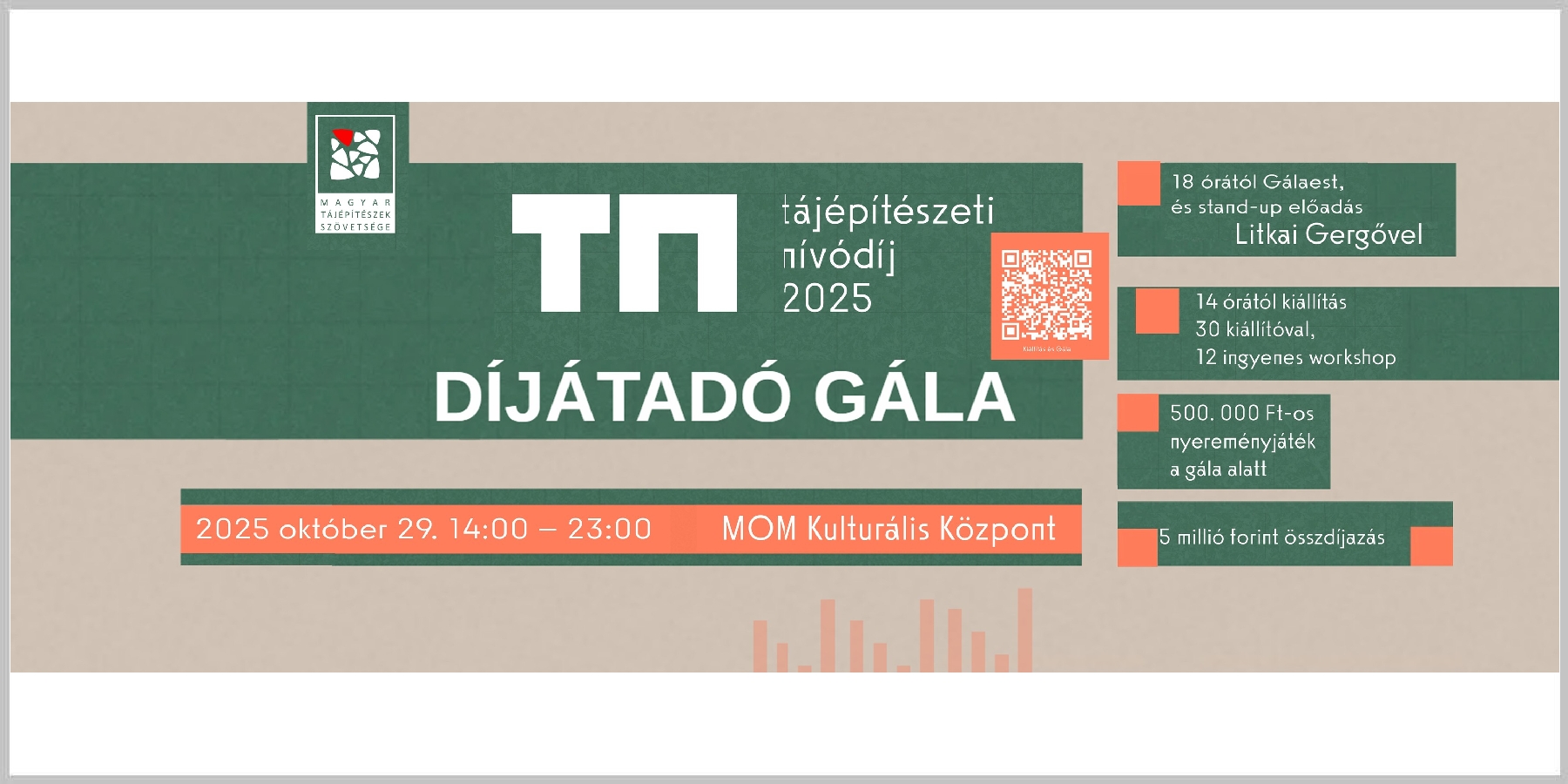 Meghívó - Magyar Tájépítész Nívódíj 2025 Díjátadó Gála és szakmai délutánTájépítészekMeghívó2025. október 6.Link másolása vágólapraMegosztásNyomtatás 2025. október 29. MOM Kult rendezvényközpont.TÁJÉPÍTÉSZETI NÍVÓDÍJ GÁLA ÉS MÉG….. Mini szakmai konferencia és egy ünnep nem csak a tájépítész szakmának A Magyar Tájépítészek Szövetsége szeretettel vár minden (nem csak szakmai) érdeklődőt a harmadik Tájépítészeti Nívódíj pályázat díjátadó gálájára, amelyet 2025. október 29-én rendeznek meg a MOM Kult rendezvényközpontban, Budapesten. Egy délután, amely nem csupán a díjátadóról szól! A MomKultban komplex szakmai program várja a látogatókat 14.00 órától – több mint 30 kiállító, 12 aktuális workshop, 500.000 Ft összdíjazású Kahoot! játék, valamint gyakornoki- és állásbörze is szerepel a kínálatban. Az egyetemisták számára külön lehetőség nyílik egy 100.000 Ft-os díjazású videó pályázatban való részvételre, amennyiben kreatívan dokumentálják az eseményt. Az est különleges fellépője és társműsorvezetője Litkai Gergely, aki tudományos stand-up showjával is színesíti az ünnepet. A pályázatra szép számmal érkeztek 2020 és 2025 között megvalósult, tájépítészeti alkotások és elméleti munkák 10 kategóriában. A díj célja a szakma kiválóságainak elismerése, különös tekintettel azokra az alkotásokra, amelyek: természetalapú megoldásokat (Nature-Based Solutions) alkalmaznak, ökológiai és fenntarthatósági szempontokat integrálnak, értékvédelemre törekednek, társadalmi hasznosságot és esélyegyenlőséget is képviselnek. Helyszín: MOM Kult, Budapest Időpont: 2025. október 29. (szerda) Áttekintő program: - 14:00–18:00 – Kiállítások, workshopok, Kahoot! felkészülés (válaszok a kiállítóknál), gyakornok- és állásbörze - 18:00–21:00 – Díjátadó Gála, Litkai Gergely stand-up show, Kahoot! nyereményjáték és eredményhirdetés. - 21:00–23:00 – Kötetlen szakmai kapcsolatépítés Workshopok témái érintik a szivacsvárosok kérdését, tervezési anomáliákat és jógyakorlatokat, a környezettudatos tájépítészeti tervezés kérdését a tájépítészetben, új irányokat a térburkolásban, mindezt olyan gyakorlati szakemberektől napi kapcsolatban vannak a tervezőkkel, gyártókkal, kivitelezőkkel. A workshopokról és támogatókról többet a Magyar Tájépítészek Szövetségének honlapján találni. GÁLA eseménye itt. Kövesd a Tájépítészek Fb oldalát a részletekért és a programért! Részletes program TN2025 Díjátadó gála Fb eseménye Sajtóközlemény a honlapon Szervező: Magyar Tájépítészek Szövetsége Kapcsolattartó és további információ: Glázer Attila alapító-szervező info@attilaglazer.com +36 30 286 9680 További információk és friss hírek: https://tajepiteszek.hu/hirek, facebook.com/tajepiteszek Magyar Tájépítészek Szövetsége Budapest, 2025. szeptember 29.